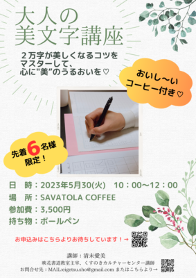 5/30 SAVATORE COFFEE様にて美文字講座開催決定!